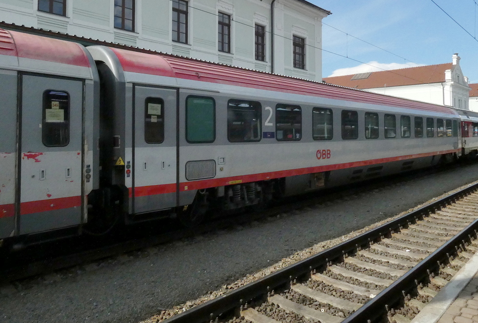 61 85 19-90 103-6 Apm wagon pasażerski 1 klasy w składzie pociągu EC Porta Moravica relacji Przemyśl Główny – Graz Hbf. 13.07.2025r. Bohumin.