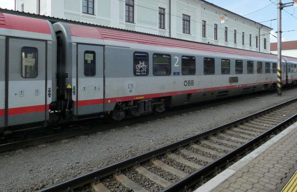 73 81 21-91 130-4 Bmz wagon pasażerski 2 klasy w składzie pociągu EC Porta Moravica relacji Przemyśl Główny – Graz Hbf. 13.07.2025r. Bohumin.
