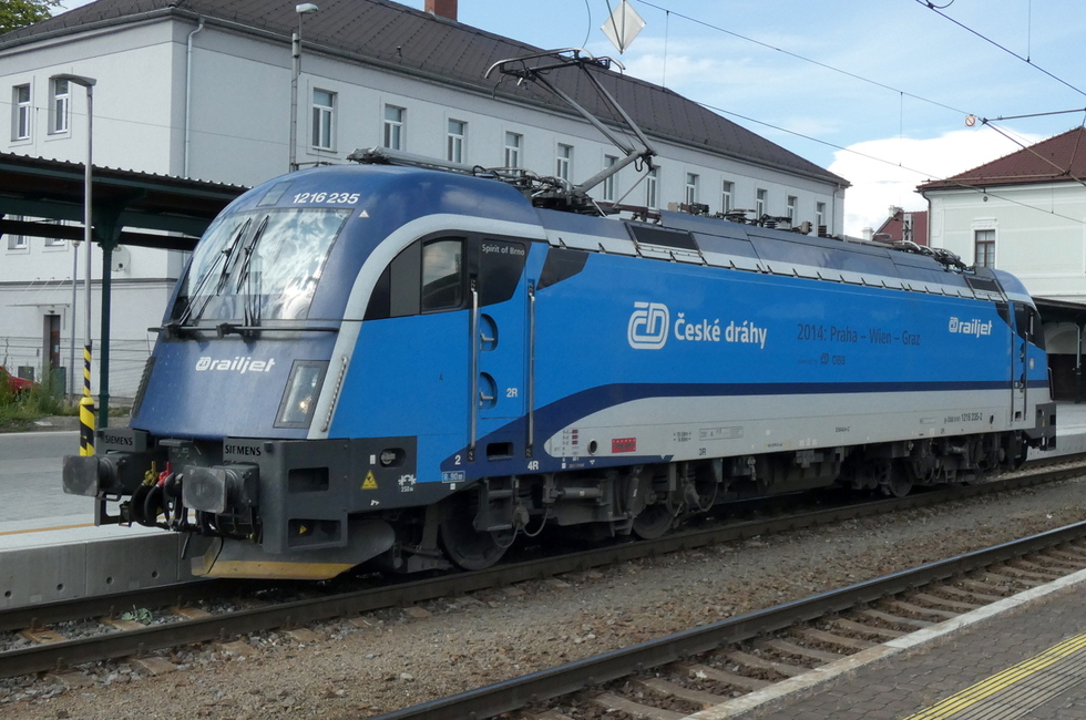 1216-235 podstawia się pod skład pociągu EC Porta Moravica relacji Przemyśl Główny – Graz Hbf. 13.07.2025r. Bohumin.