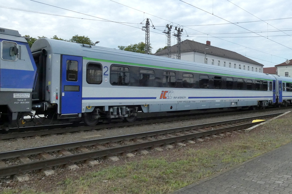 61 51 21-70 166-3 B11mnouz wagon pasażerski 2 klasy typu 144A w składzie pociągu EC Polonia relacji Wien Hbf. – Warszawa Wschodnia, 13.07.2025r. Bohumin.