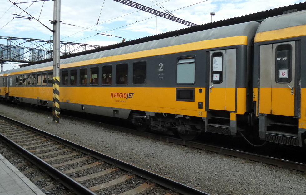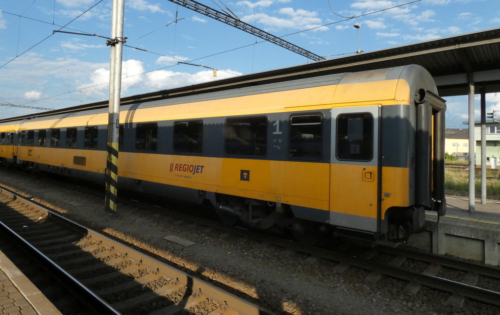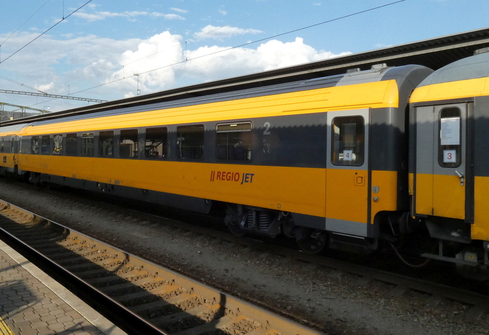61 81 19-90 001-6 Amz wagon pasażerski 1 klasy w składzie pociągu Regio Jet relacji Bohumin – Brno-Královo Pole, 13.07.2025r. Bohumin.