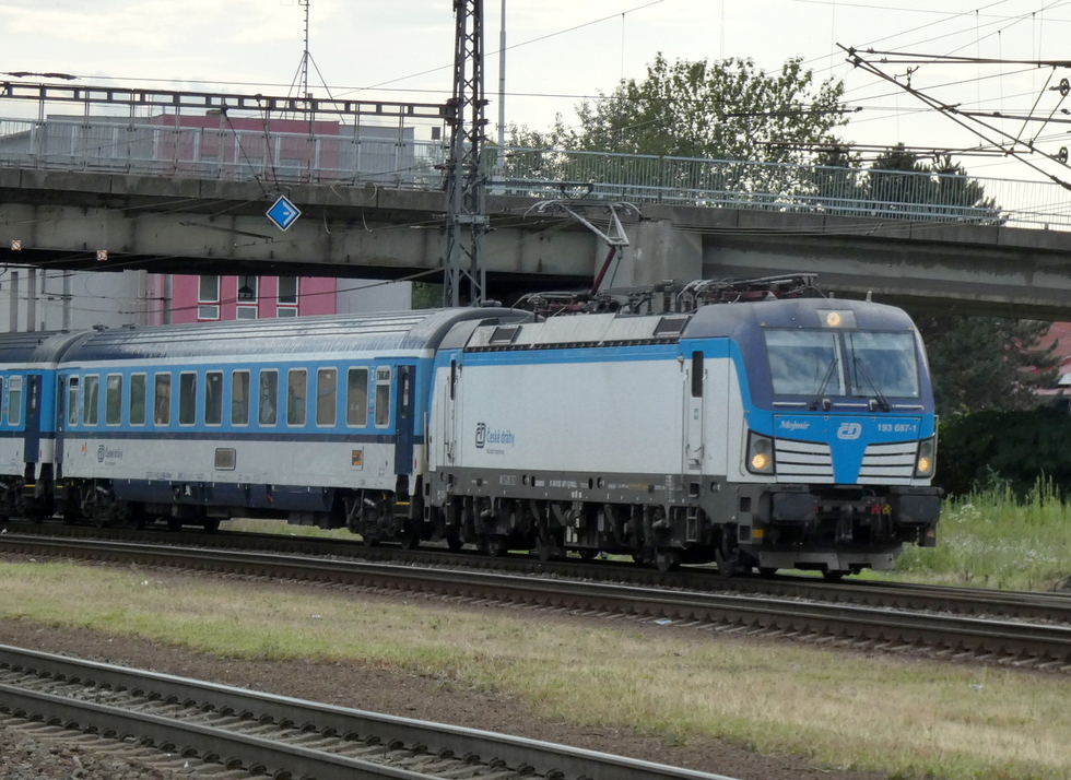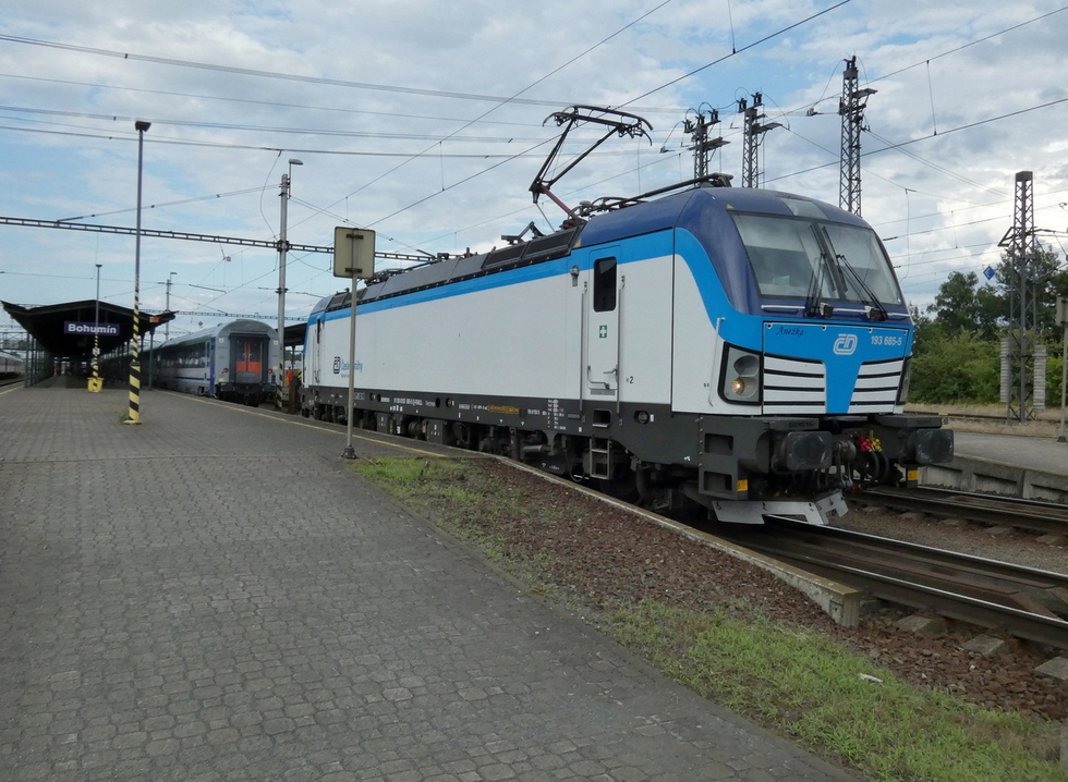 193-685 podstawia się pod sklad pociągu EC Silesia relacji Warszawa Wschodnia – Praha hl.n. 13.07.2025r. Bohumin.