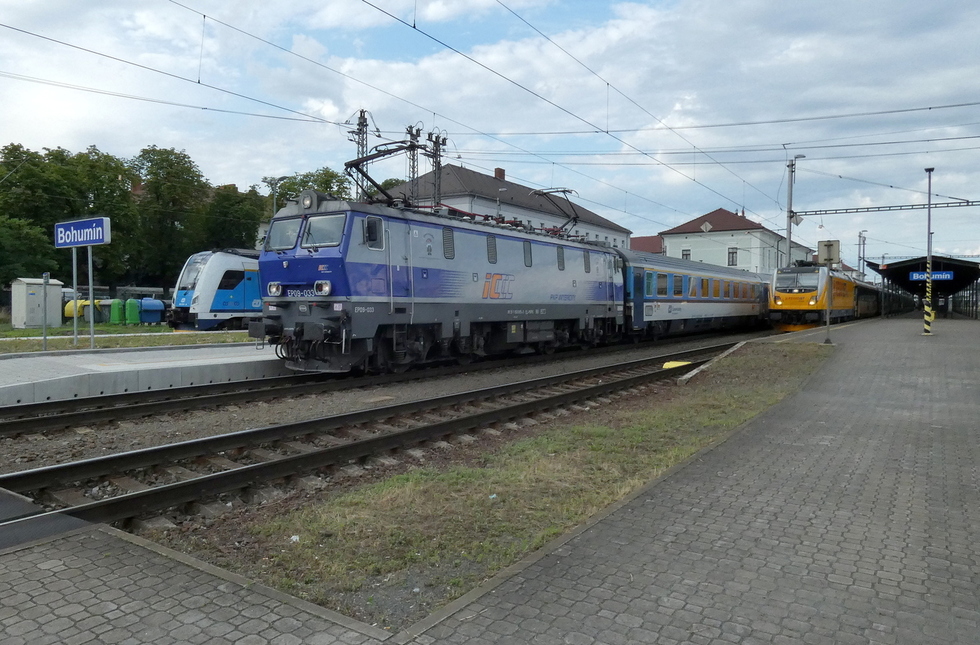 EP09-033 z składem pociągu EC Silesia relacji Praha hl.n. – Warszawa Wschodnia, 13.07.2025r. Bohumin.