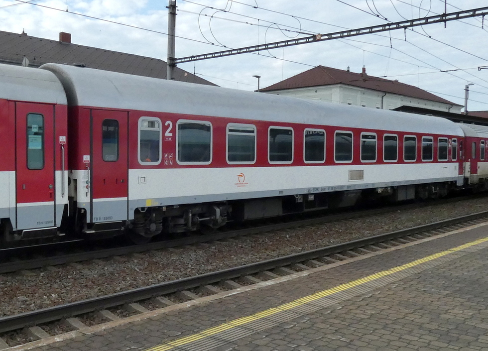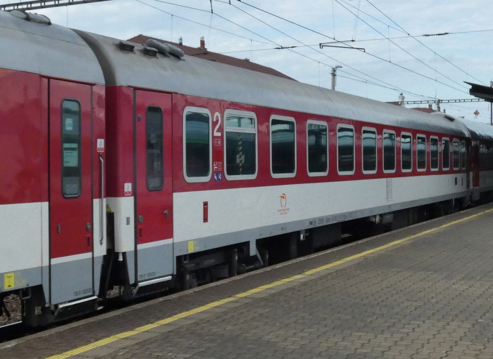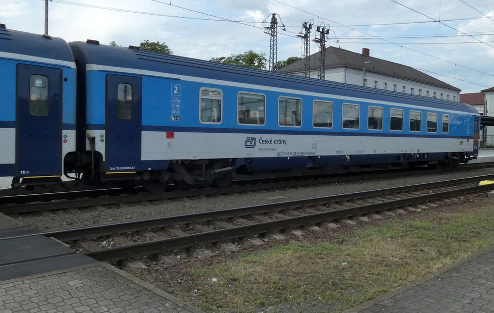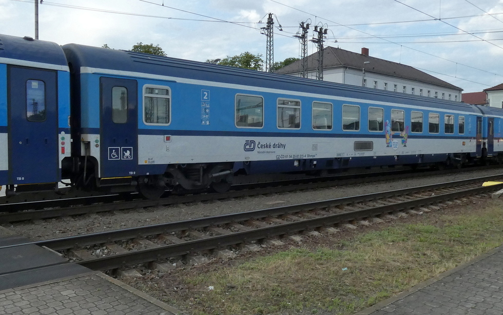 61 54 21-91 825-6 Bmz.232 wagon pasażerski 2 klasy w składzie pociągu EC Silesia relacji Warszawa Wschodnia – Praha hl.n. 13.07.2025r. Bohumin.