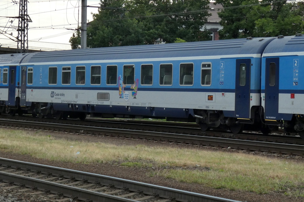 73 54 21-91 013-5 Bmz.245 wagon pasażerski 2 klasy w składzie pociągu R Kysučan relacji Žilina – Ostrava-Svinov,13.07.2025r. Bohumin.