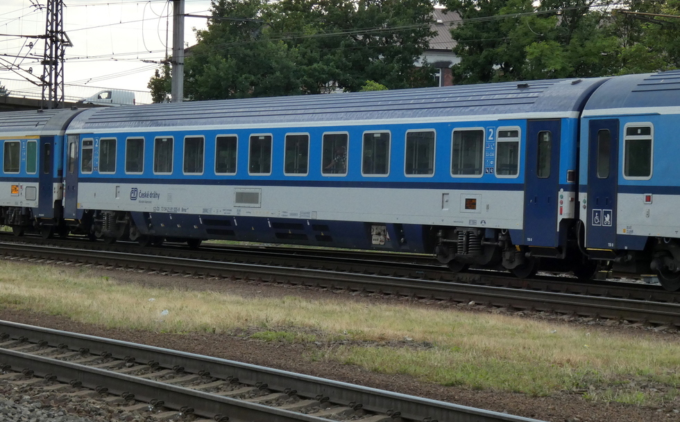 73 54 21-91 025-9 Bmz.245 wagon pasażerski 2 klasy w składzie pociągu EC Silesia relacji Praha hl.n. – Warszawa Wschodnia, 13.07.2025r. Bohumin.
