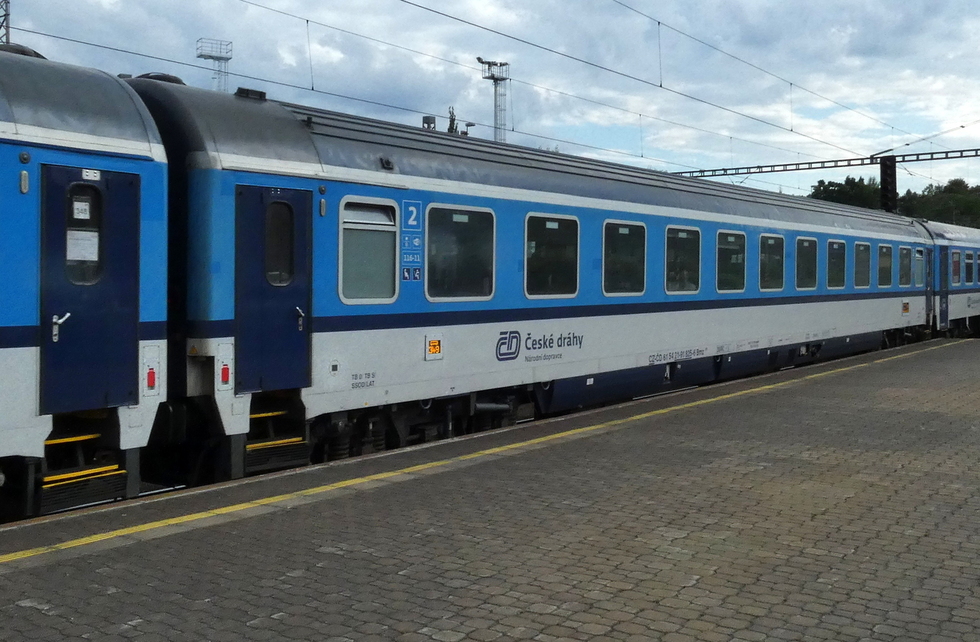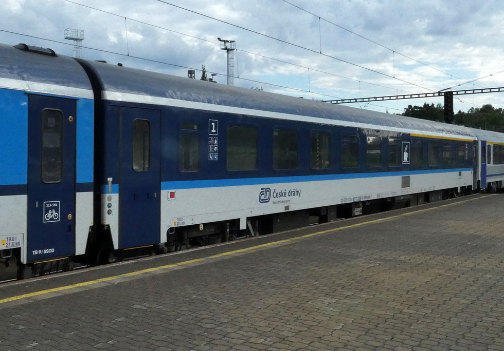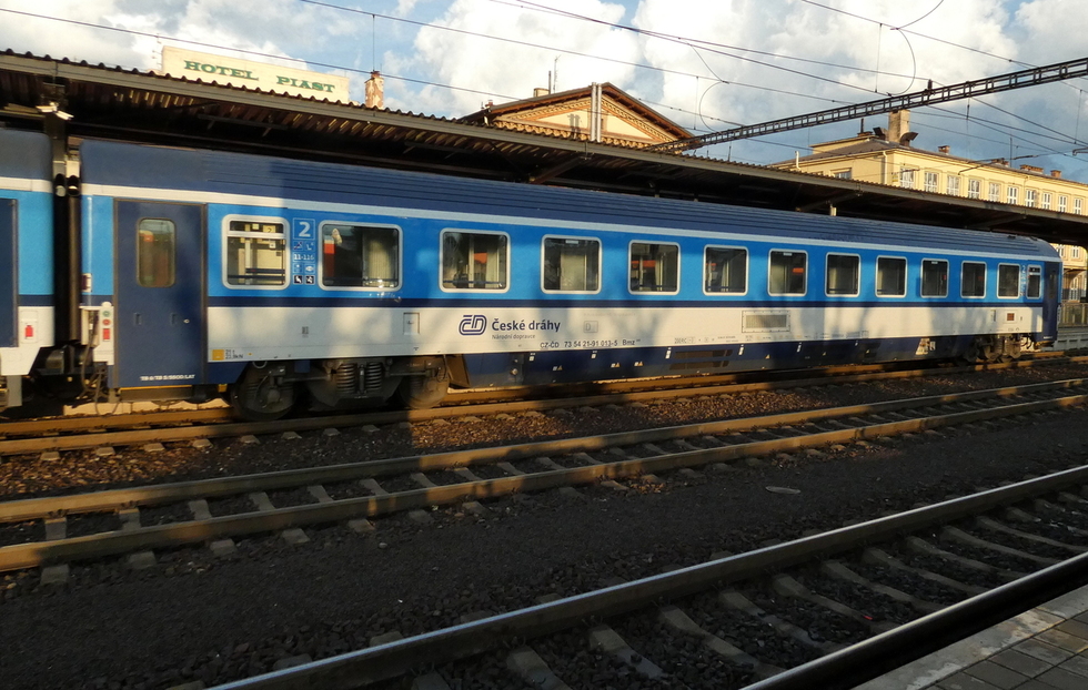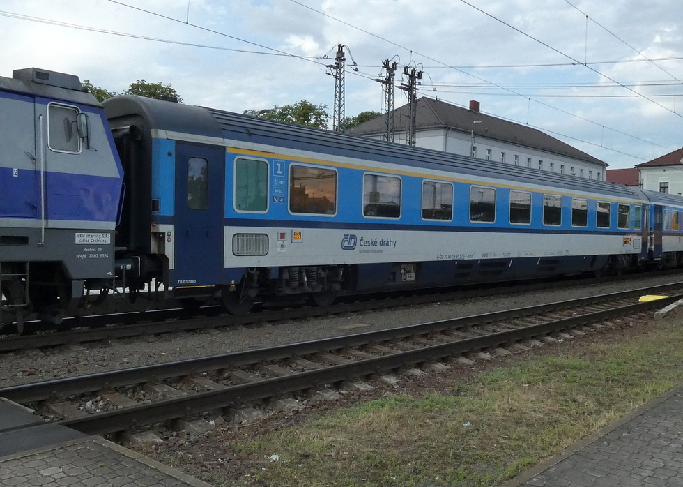 73 54 19-91 510-1 Amz.138 wagon pasażerski 1 klasy w składzie pociągu EC Silesia relacji Praha hl.n. – Warszawa Wschodnia, 13.07.2025r. Bohumin.