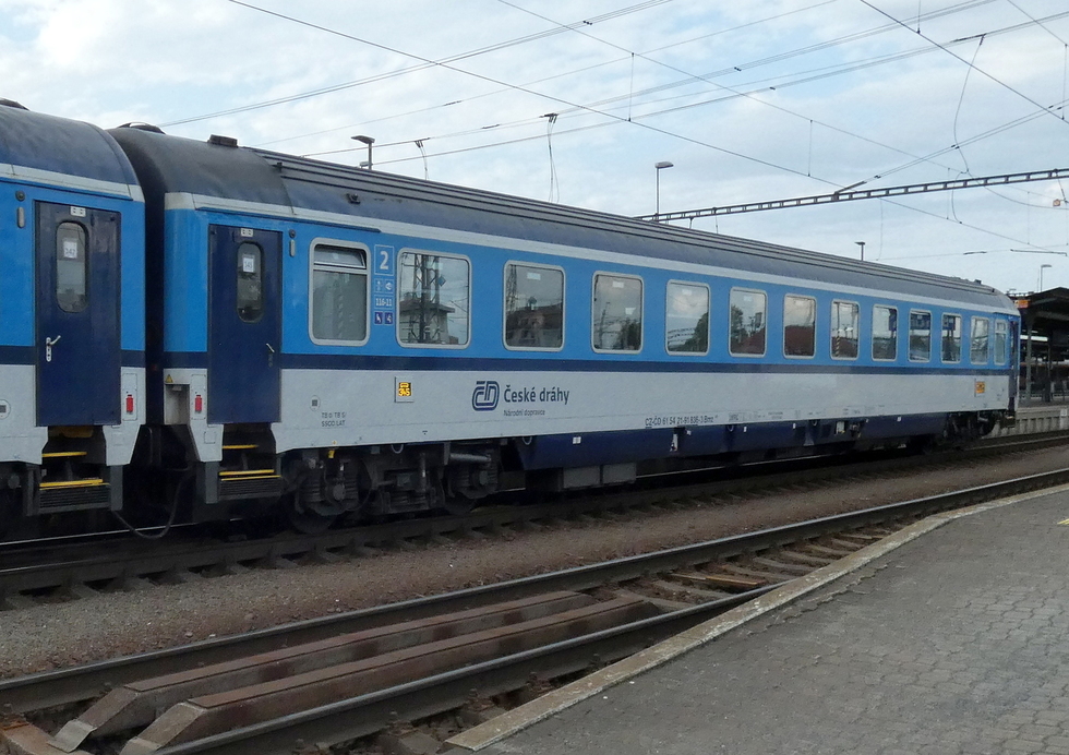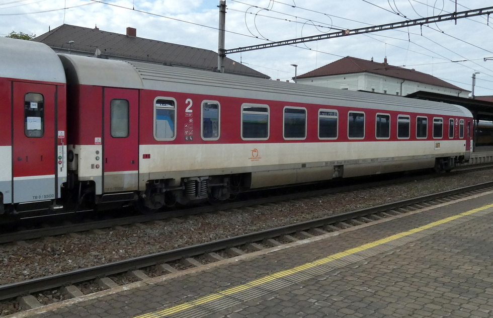 61 54 21-91 830-6 Bmz.232 wagon pasażerski 2 klasy w składzie pociągu EC Silesia relacji Warszawa Wschodnia – Praha hl.n. 13.07.2025r. Bohumin.