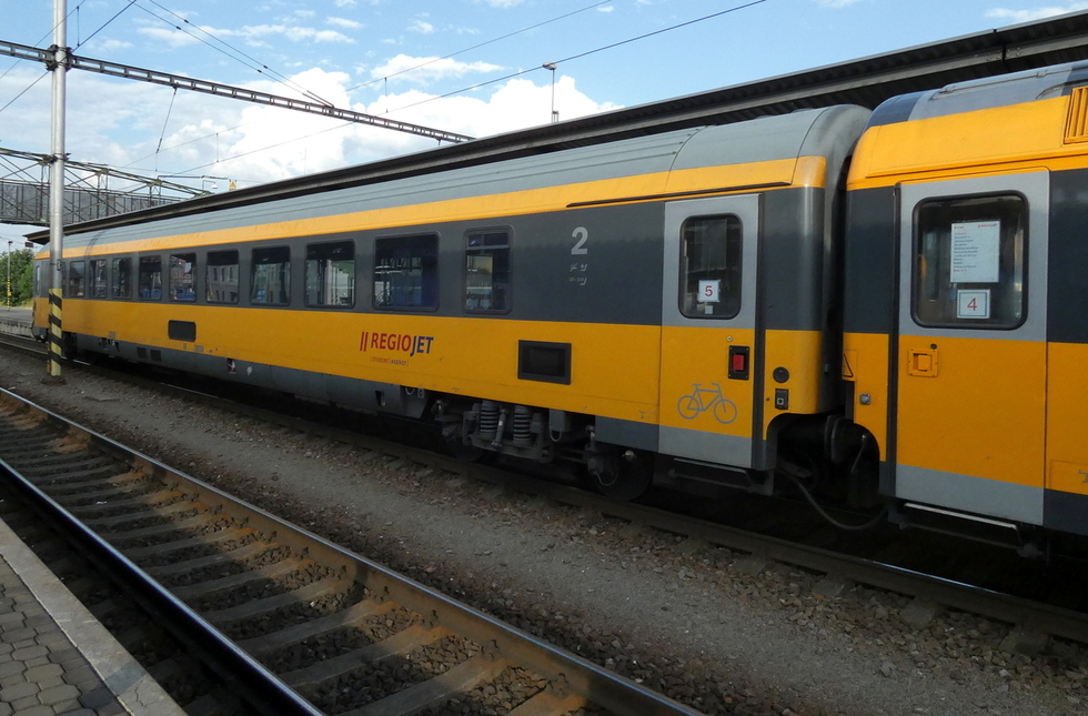 61 81 20-91 072-3 Bmz wagon pasażerski 2 klasy w składzie pociągu Regio Jet relacji Bohumin – Brno-Královo Pole, 13.07.2025r. Bohumin.