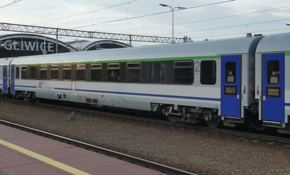 51 51 39-70 009-7 AB9nouz wagon pasażerski 1-2 klasy typu 112Ar w składzie pociągu TLK Flisak relacji Gdynia Główna – Katowice, 06.07.2025r. Gliwice.