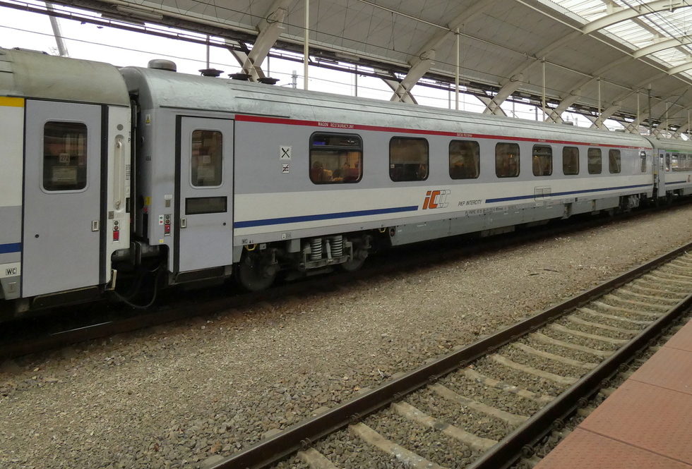61 51 88-70 235-8 WRmnouz wagon restauracyjny typu 406A w składzie pociągu IC Wawel relacji Berlin Hbf, – Przemyśl Główny, 29.08.2025r. Gliwice.