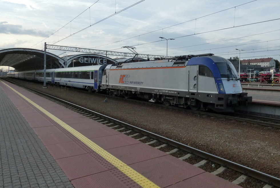 EP09-036 z składem pociągu TLK Flisak relacji Gdynia Główna – Katowice, 06.07.2025r. Gliwice.