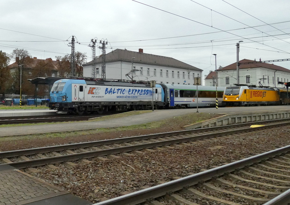 193-698 z składem pociągu EC Báthory relacji Warszawa Wschodnia – Budapest-Nyugati, 27.09.2025r. Bohumin.