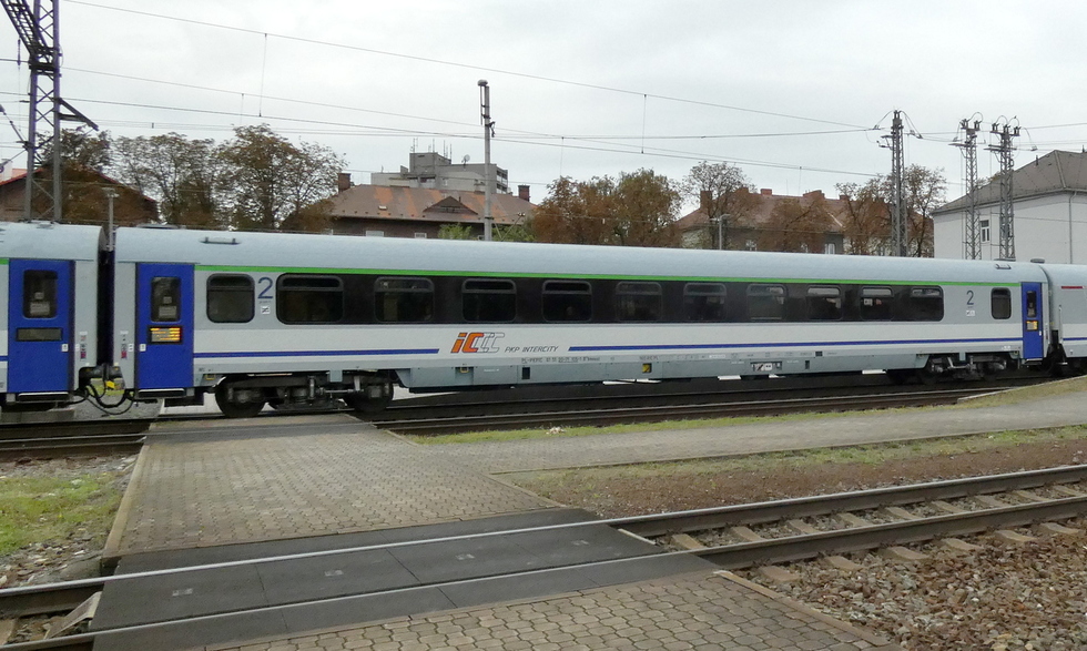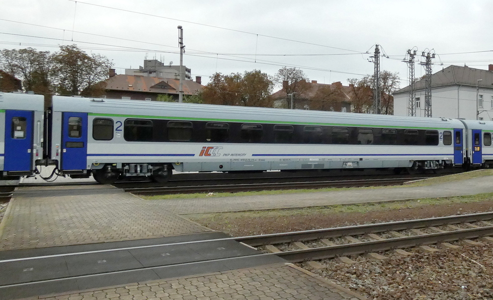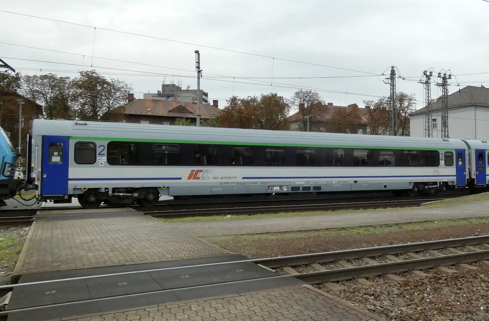 61 55 84-91 408-4 Bbdpmz wagon pasażerski 2 klasy w skladzie pociągu EC Báthory relacji Warszawa Wschodnia – Budapest-Nyugati, 27.09.2025r. Bohumin.