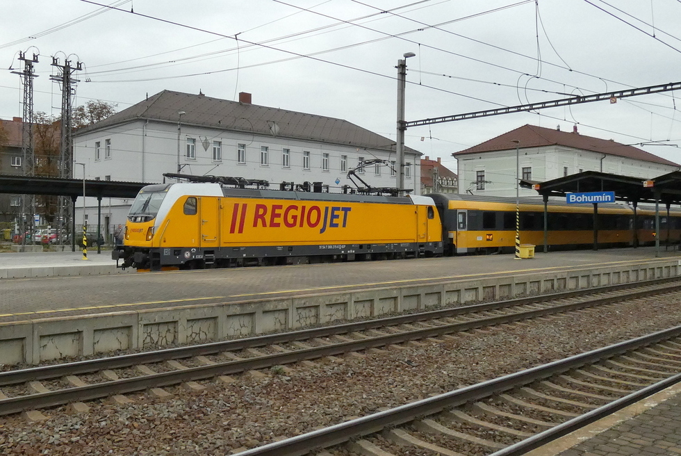 388-215 z składem pociągu Regio Jet relacji Bohumin – Brno-Královo Pole, 27.09.2025r. Bohumin.