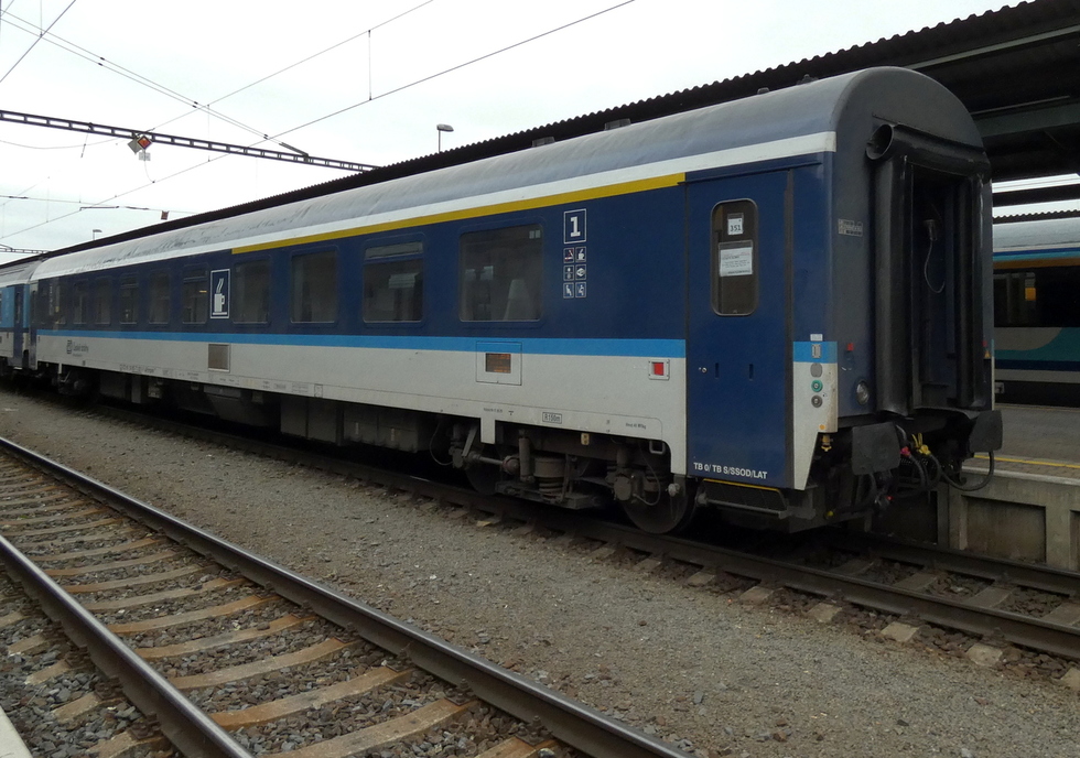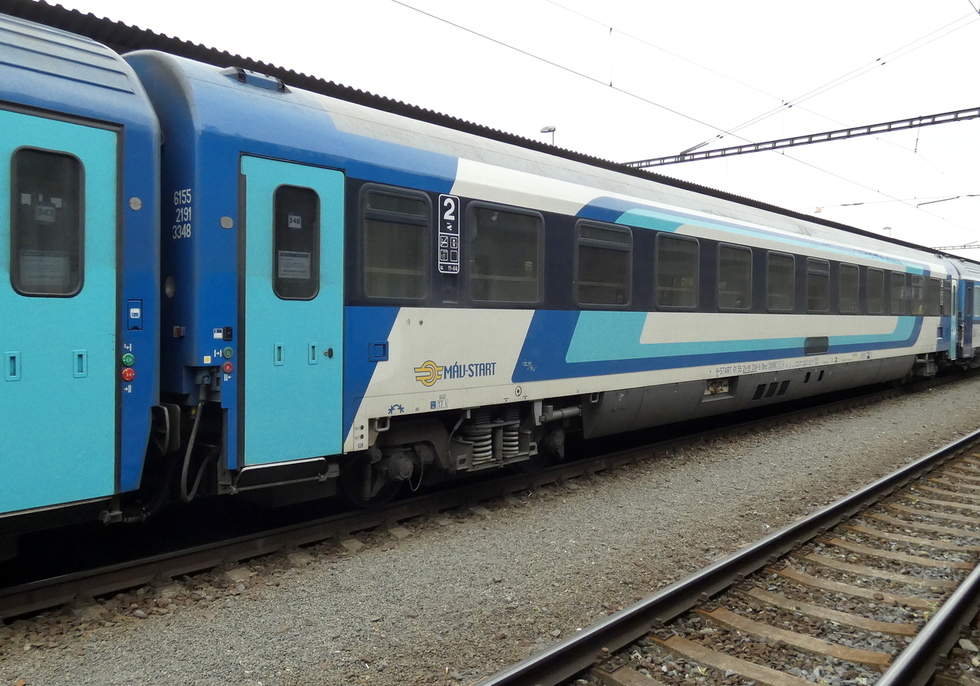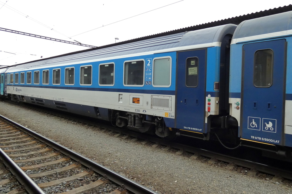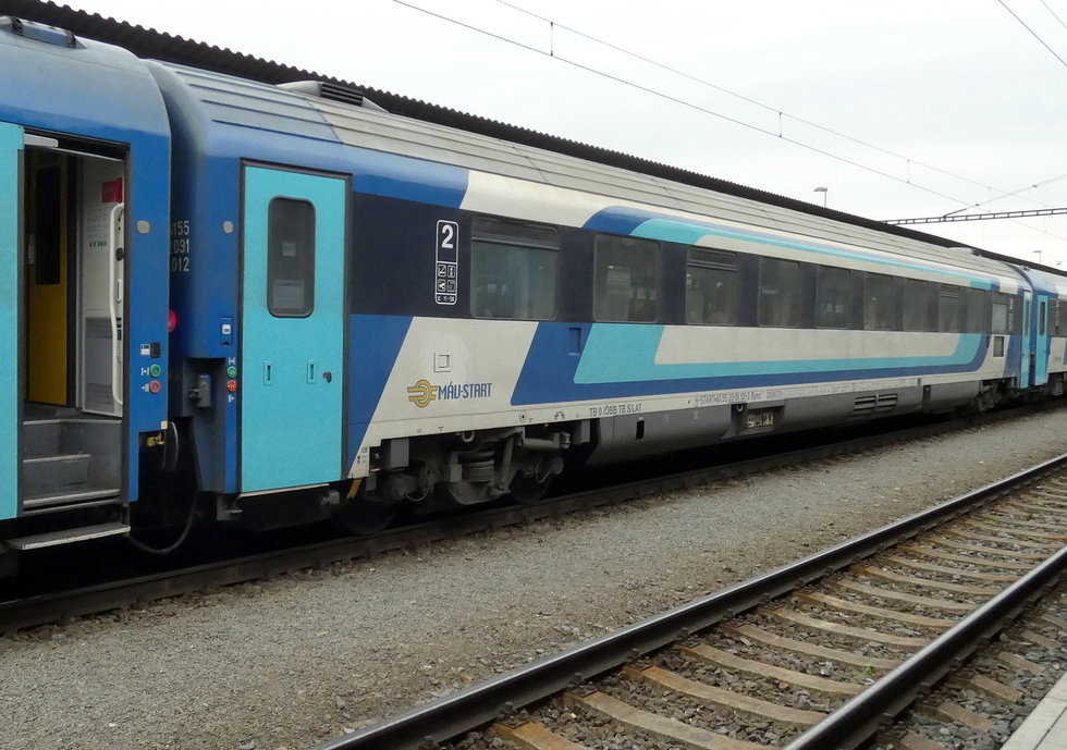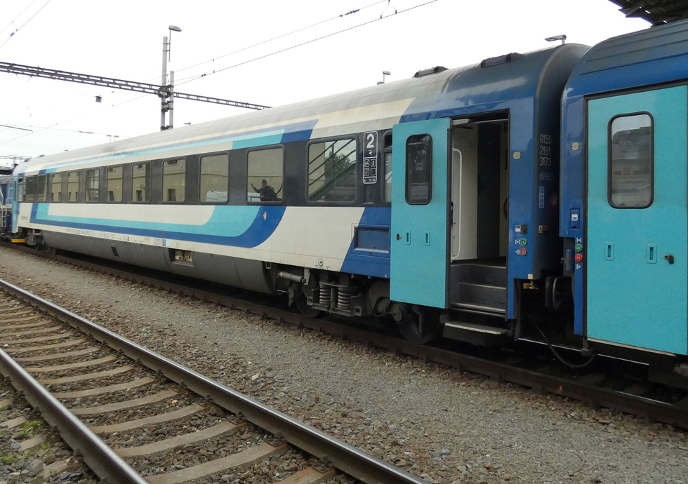 73 54 19-91 014-6 Ampz.143 wagon pasażerski 1 klasy w składzie pociągu EC Košičan relacji Praha hl.n. – Košice, 21.09.2025r. Český Těšín.