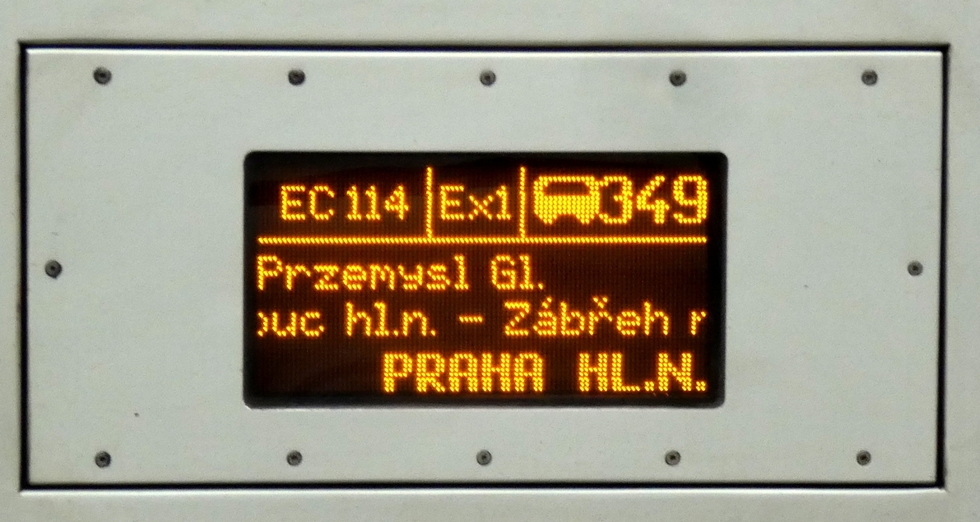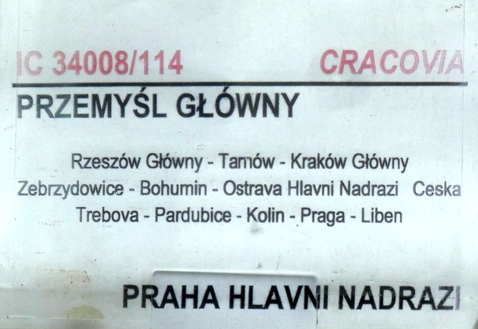 Tablica kierunkowa pociągu EC Cracovia relacji Przemyśl Główny – Praha hl.n. 27.09.2025r. Bohumin.