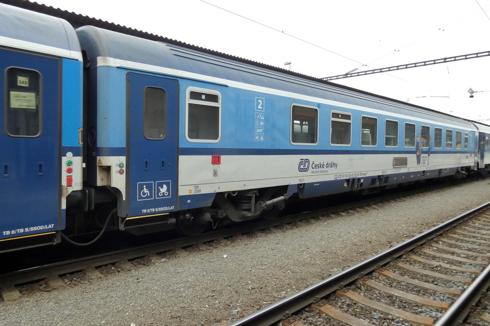 61 54 20-91 013-0 Bhmpz.228 wagon pasażerski 2 klasy w skladzie pociągu EC Cracovia relacji Przemyśl Główny – Praha hl.n. 27.09.2025r. Bohumin.