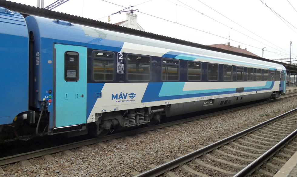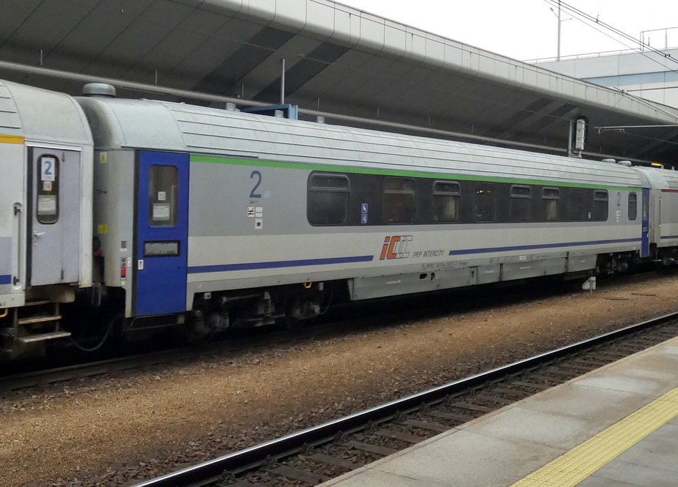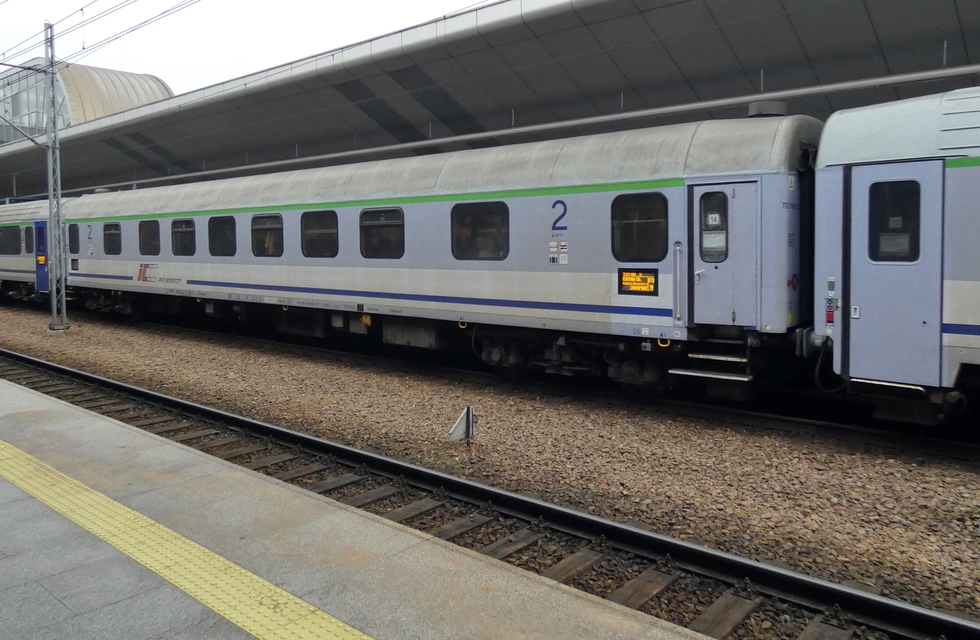 61 55 21-91 320-7 Bmz wagon pasażerski 2 klasy w skladzie pociągu EC Báthory relacji Warszawa Wschodnia – Budapest-Nyugati, 27.09.2025r. Bohumin.