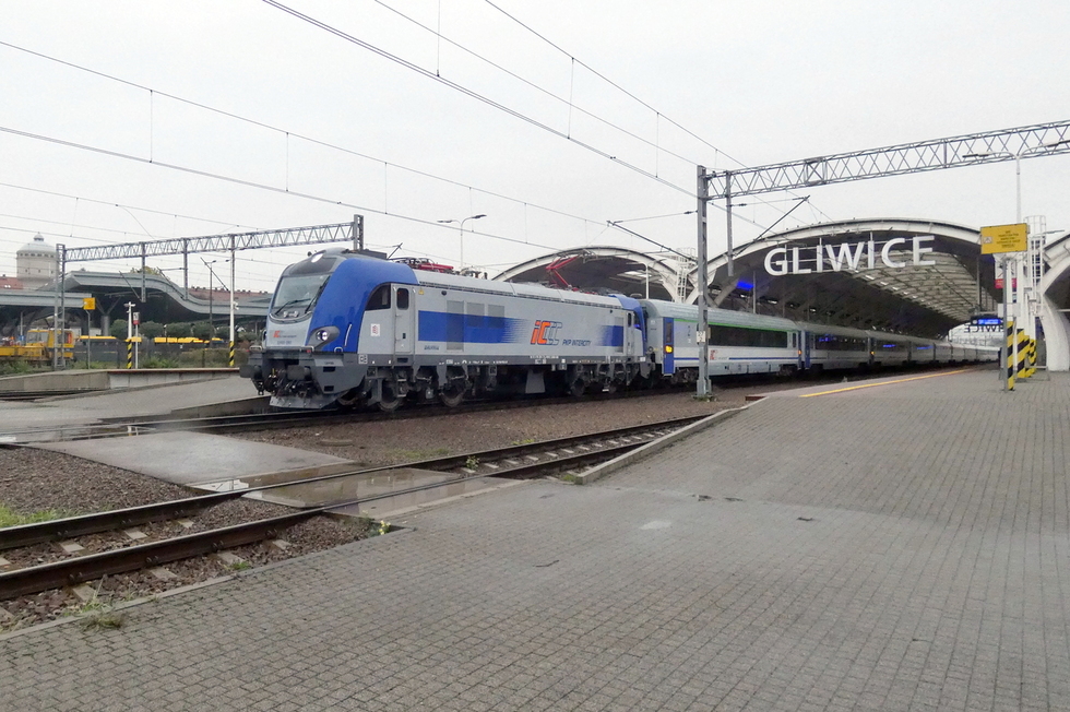 EP09-018 ze składem pociągu IC Chełmoński relacji Kraków Główny – Świnoujście, 19.09.2025r. Gliwice.