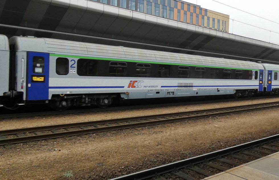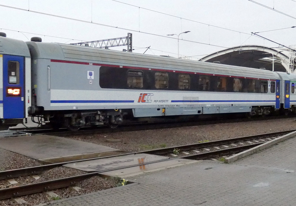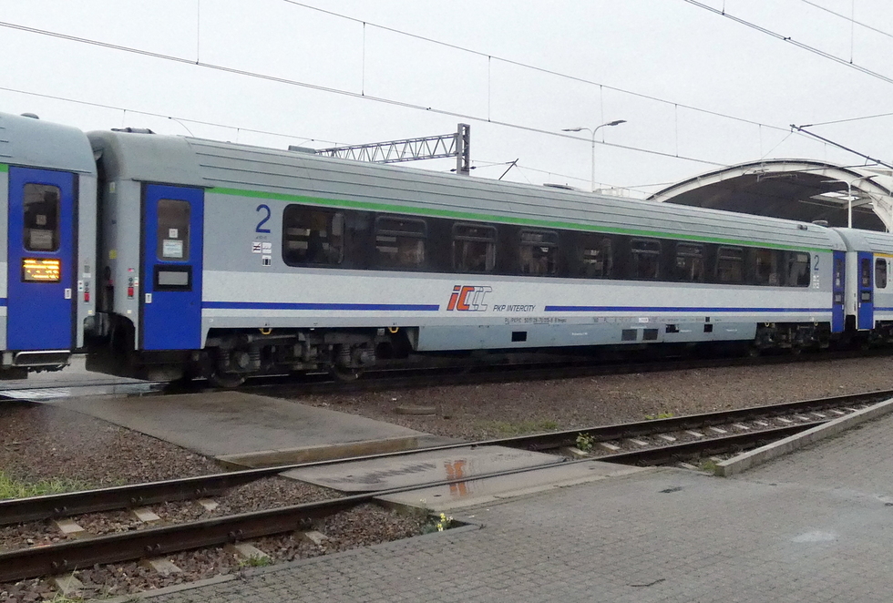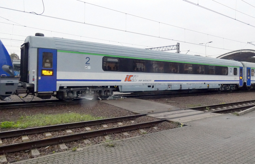 50 51 84-78 001-1 B8nopuvz wagon pasażerski 2 klasy typu 111Arow w składzie pociągu IC Chełmoński relacji Kraków Główny – Świnoujście, 19.09.2025r. Gliwice.