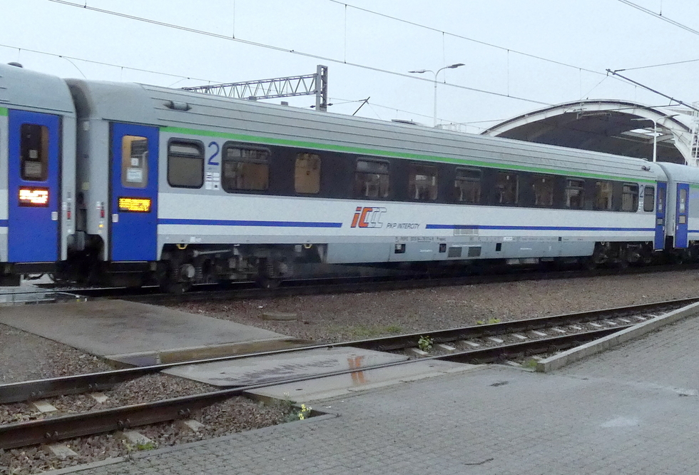 50 51 28-70 015-8 B7bnopuz wagon pasażerski 2 klasy typu 168A w składzie pociągu IC Malczewski relacji Kraków Główny – Kołobrzeg, 10.10.2025r. Gliwice.