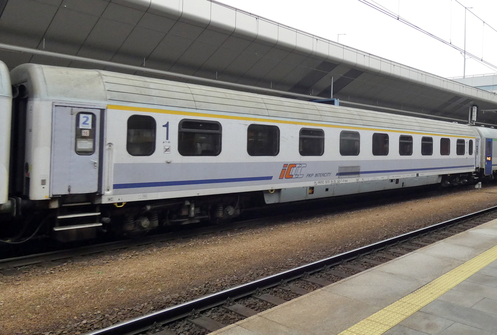50 51 19-78 265-2 A9nouz wagon pasażerski 1 klasy typu 140A w składzie pociągu IC Matejko relacji Kraków Główny – Szczecin Główny. 02.12.2025r. Kraków Główny.