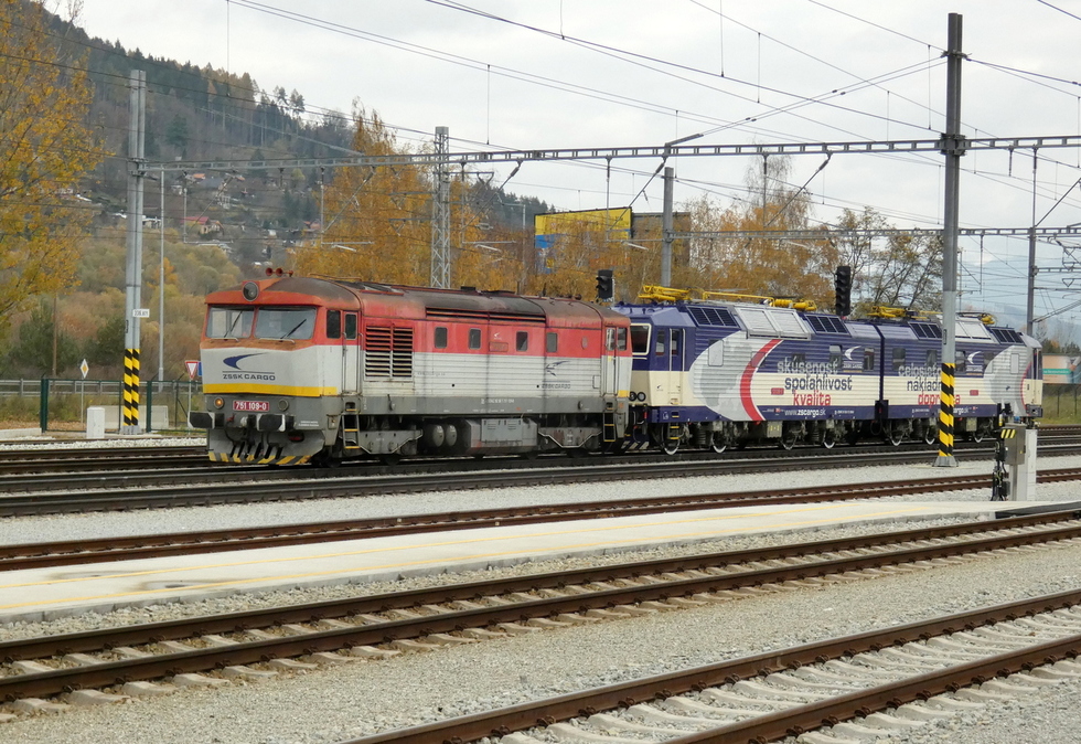 193-975 ze składem pociągu EC Ostravan relacji Praha hl.n. – Žilina, 11.11.2025r. Žilina.