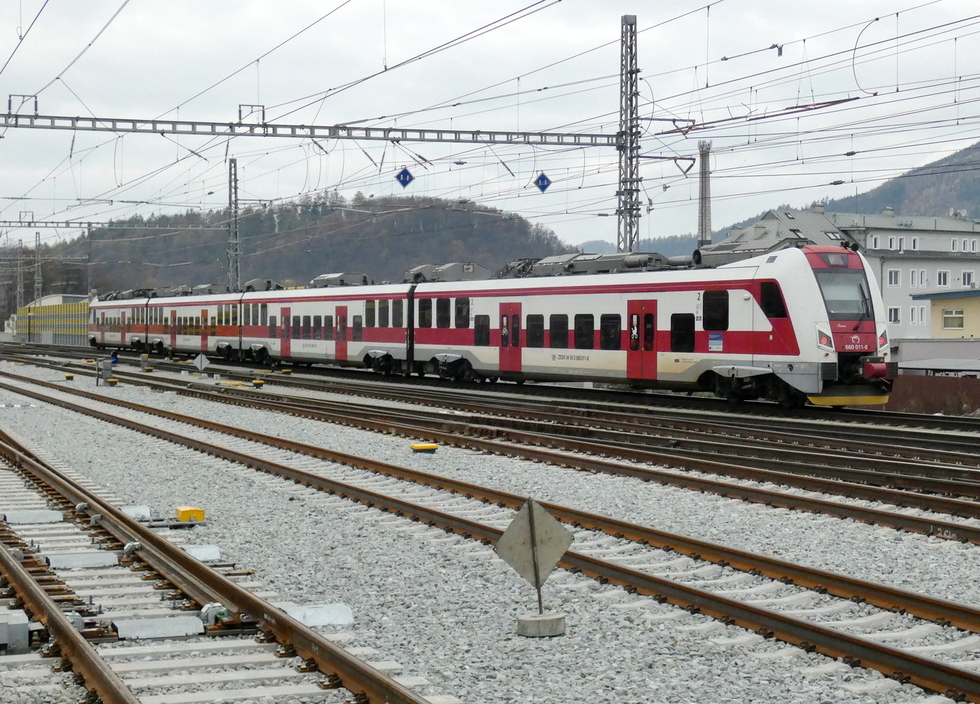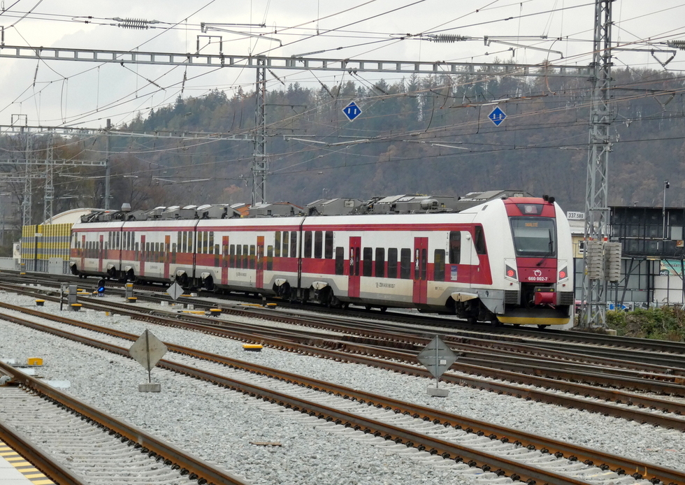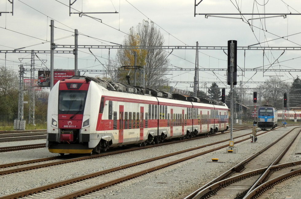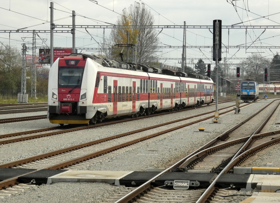 361-121 przyprowadziła skład pociągu R Považan relacji Bratislava hl.st.- Žilina, 11.11.2025r. Žilina.