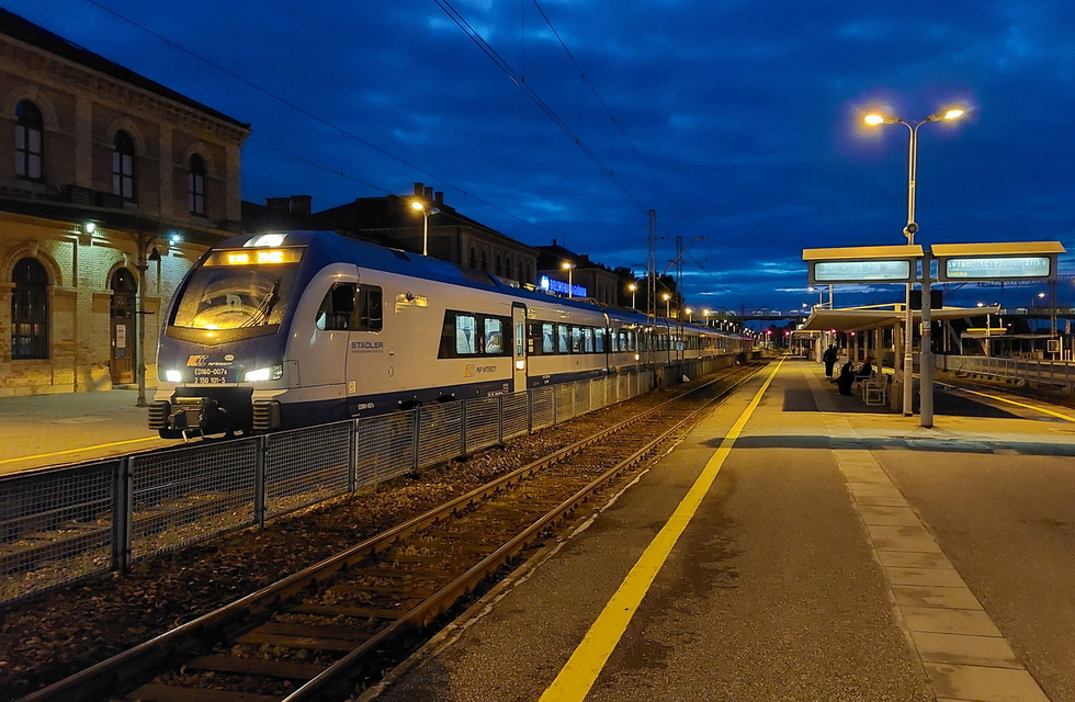 EN78-008 + 006 KMŁ jako pociąg relacji Kraków Główny – Oświęcim, 02.12.2026r. Kraków Główny.