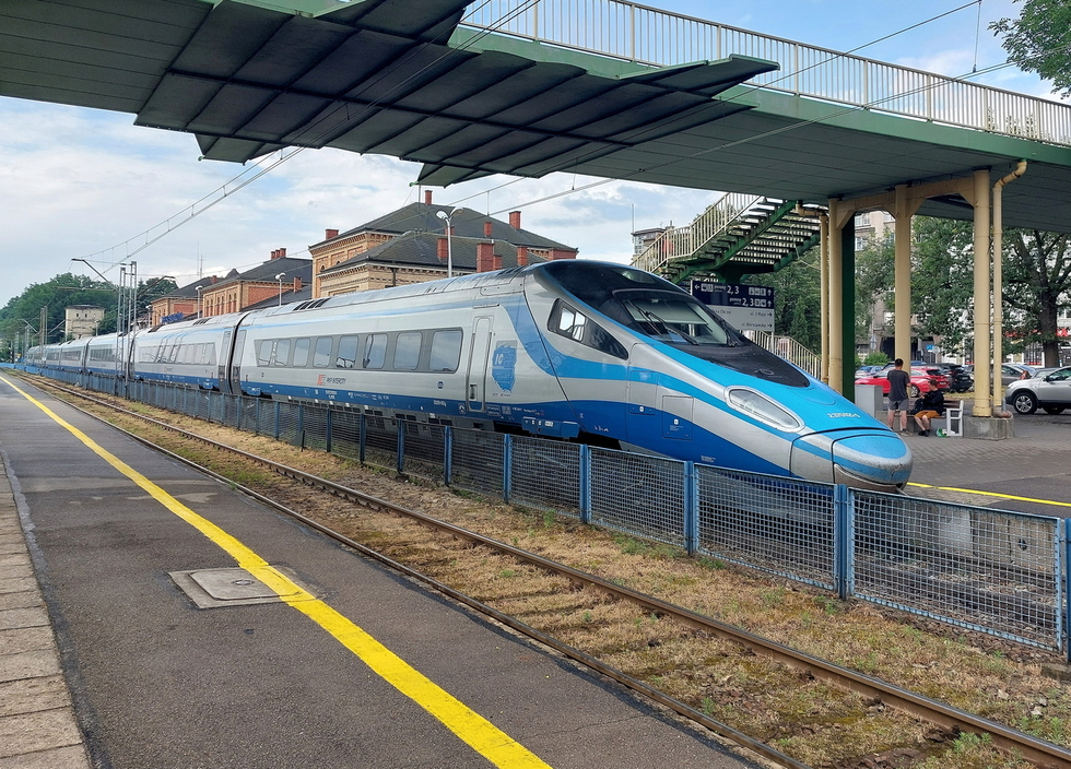 383-109 ze składem pociągu Ex Tatran relacji Košice – Bratislava hl.st.. 11.11.2025r. Žilina.