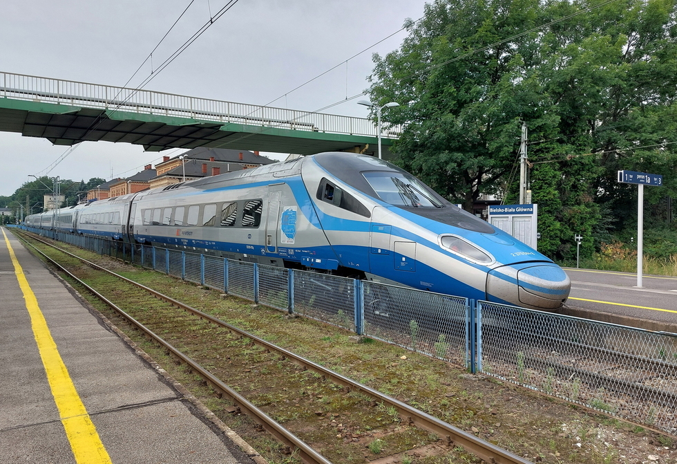 ED250-002 jako pociąg EIP relacji Bielsko Biała Główna – Gdynia Główna, 01.08.2025r. Bielsko Biała Główna.