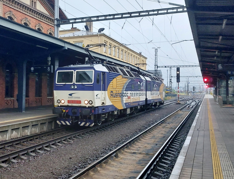 193-576 ze składem pociągu EC Ostravan relacji Žilina – Praha hl.n, 11.11.2025r. Žilina.