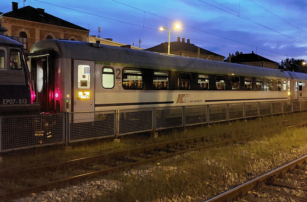 EP07-513 ze składem pociągu IC Podhalanin relacji Zakopane – Świnoujście, 29.07.2025r. Bielsko Biała Główna.