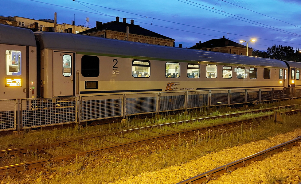 61 56 19-70 043-3 Aeer wagon pasażerski 1 klasy w składzie pociągu IC Porta Moravica relacji Kraków Główny – Graz Hbf, 02.12.2025r. Kraków Główny.