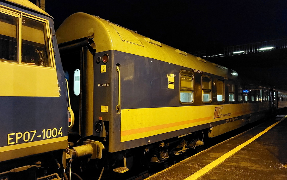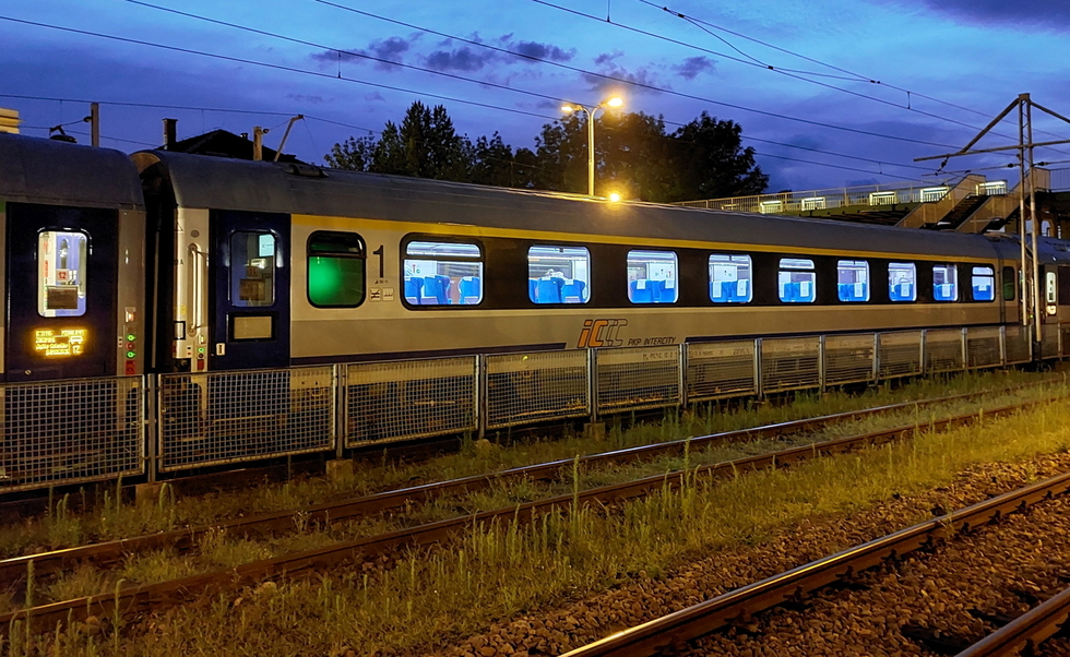 50 51 59-78 007-9 Bc8bnouz wagon z miejscami do leżenia typu 140A podtyp 173A w składzie pociągu IC Matejko relacji Kraków Główny – Szczecin Główny. 02.12.2025r. Kraków Główny.
