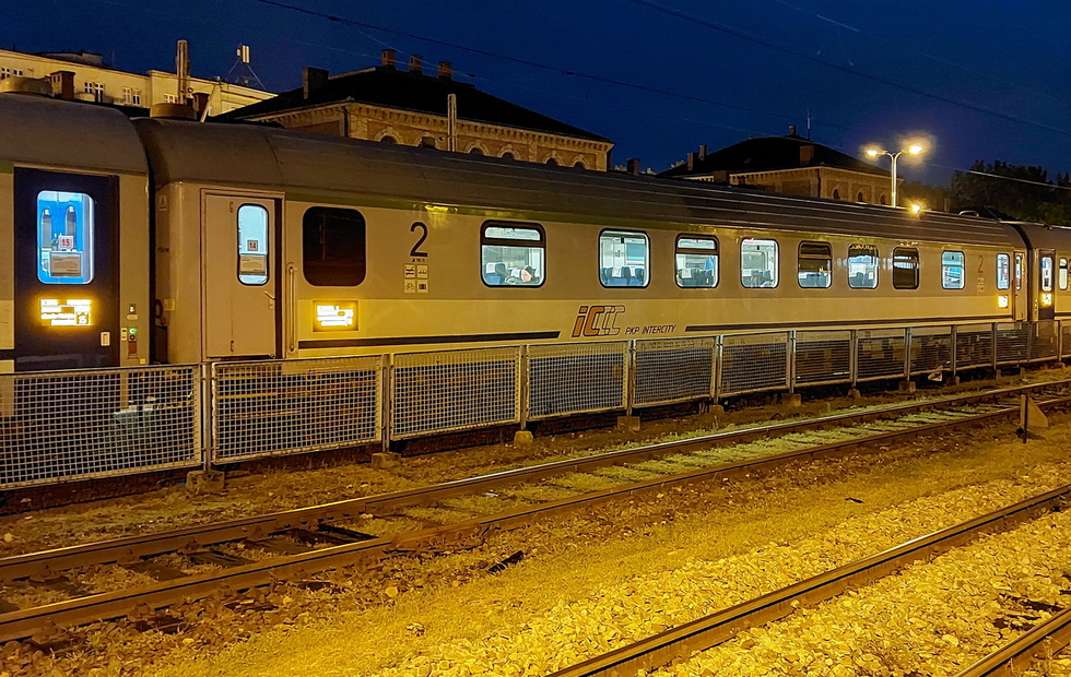61 54 21-91 812-4 Bmz.232 wagon pasażerski 2 klasy w składzie pociągu IC Porta Moravica relacji Kraków Główny – Graz Hbf, 02.12.2025r. Kraków Główny.