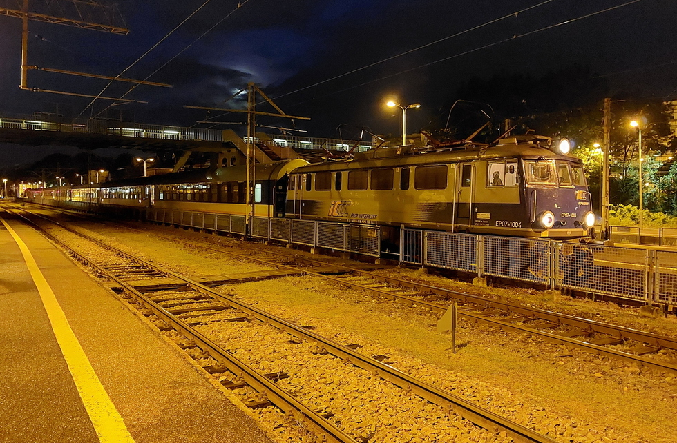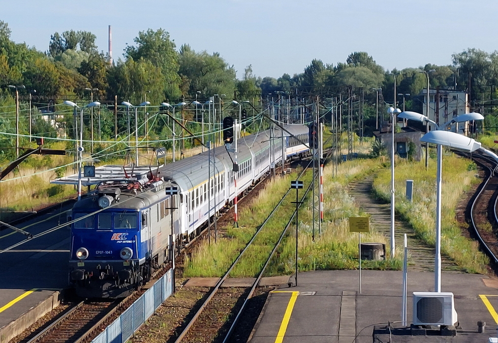 EP07-1004 ze składem pociągu IC Podhalanin relacji Zakopane – Świnoujście, 03.08.2025r. Bielsko Biała Główna.