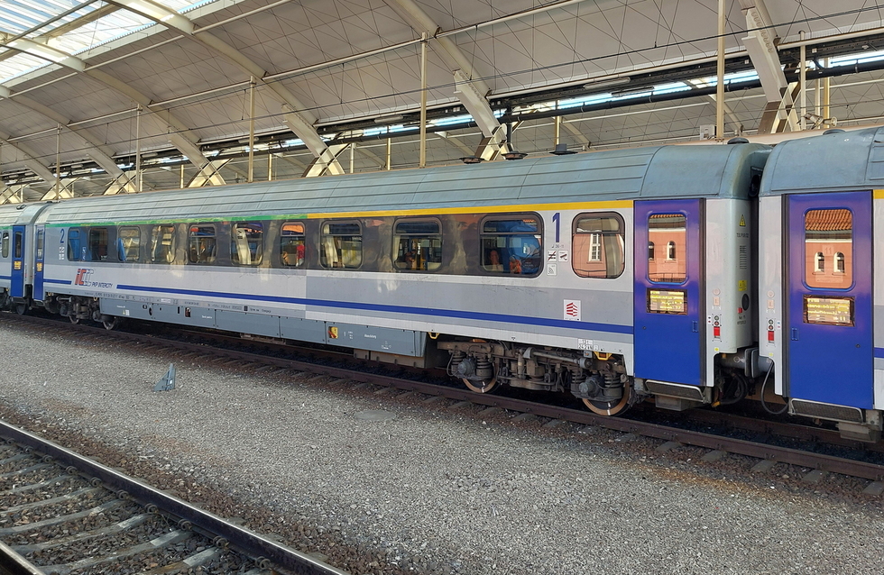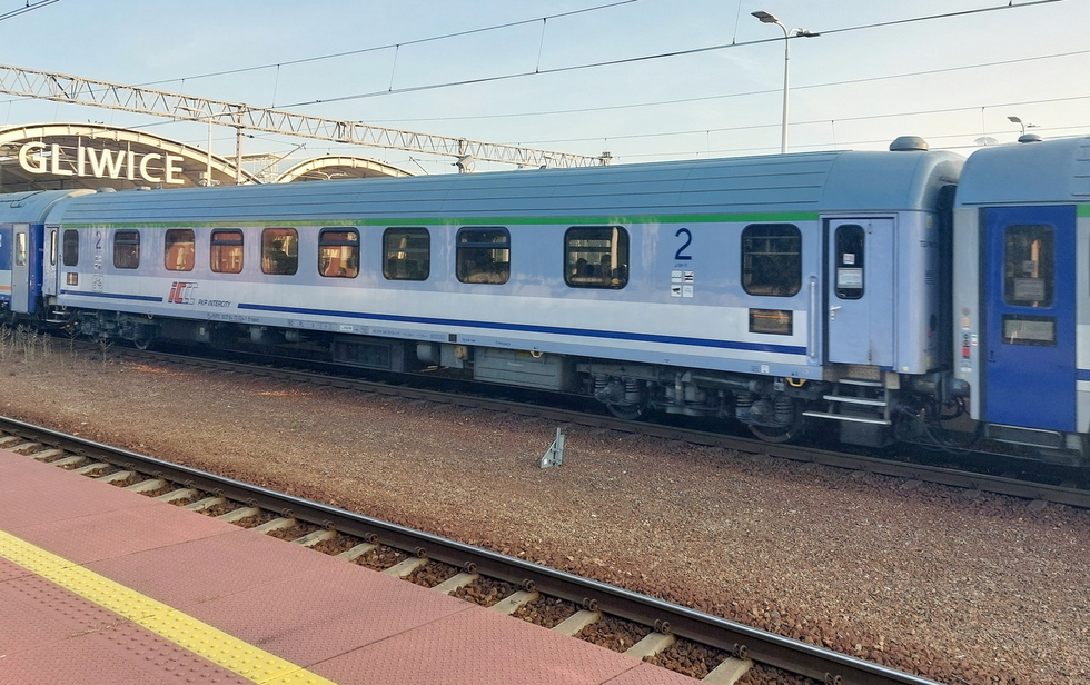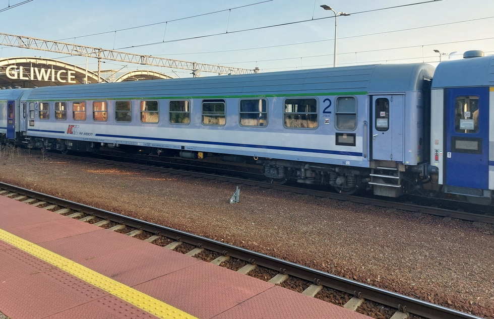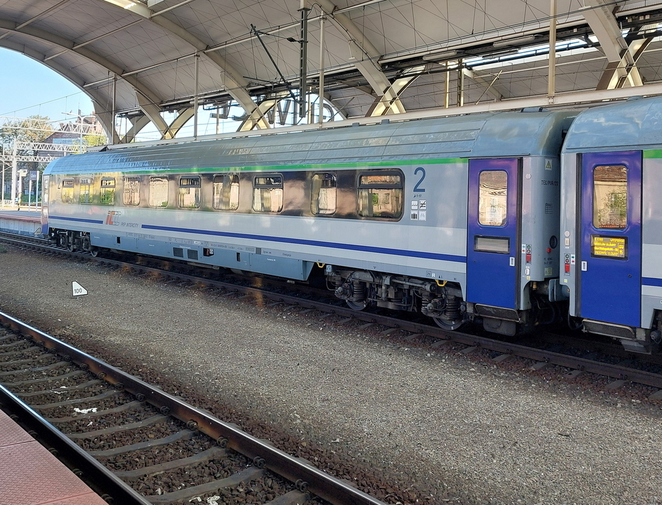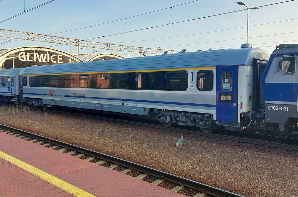 50 51 19-78 273-6 A9nouz wagon pasażerski 1 klasy typu 140A w składzie pociągu IC Rozewie relacji Hel – Przemyśl Główny, 28.08.2025r. Gliwice.