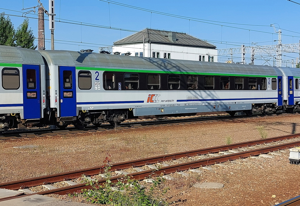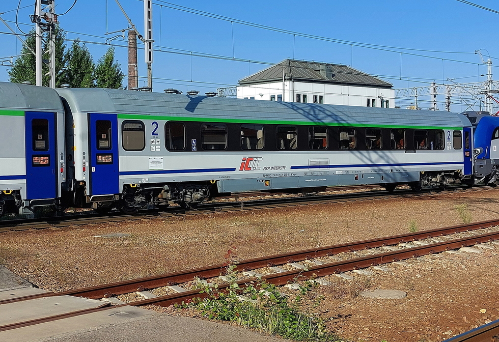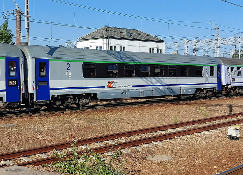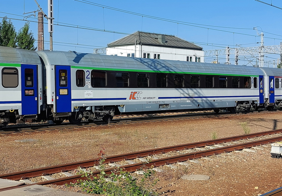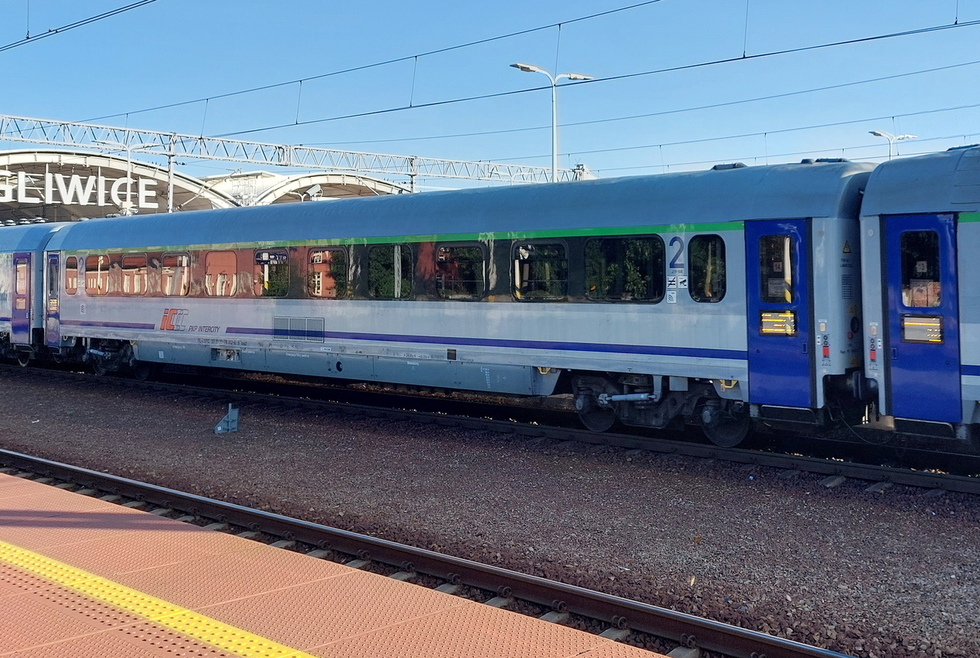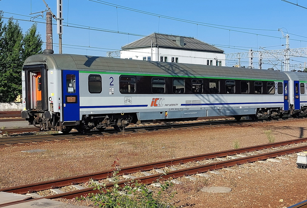 50 51 84-78 038-3 B7nopuvz wagon pasażerski 2 klasy typu 111Arow w składzie pociągu IC Malczewski relacji Kraków Główny – Kołobrzeg, 13.08.2025r. Gliwice.