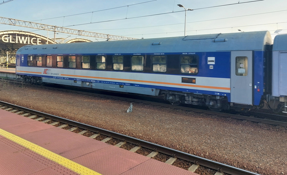52 51 70-70 040-1 WLAB10mouz wagon sypialany typu Bautzen86 w składzie pociągu IC Rozewie relacji Hel – Przemyśl Główny, 28.08.2025r. Gliwice.
