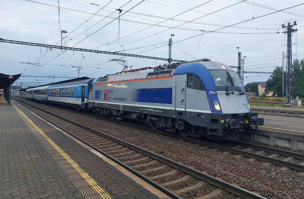 EU44-002 ze składem pociągu EC Danubius relacji Wien Hbf. – Wrocław Główny 31.08.2025r. Bohumin.